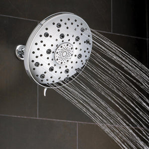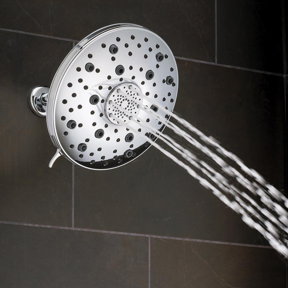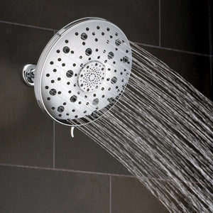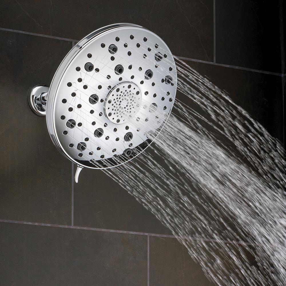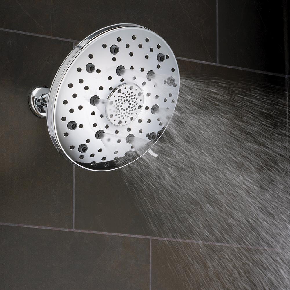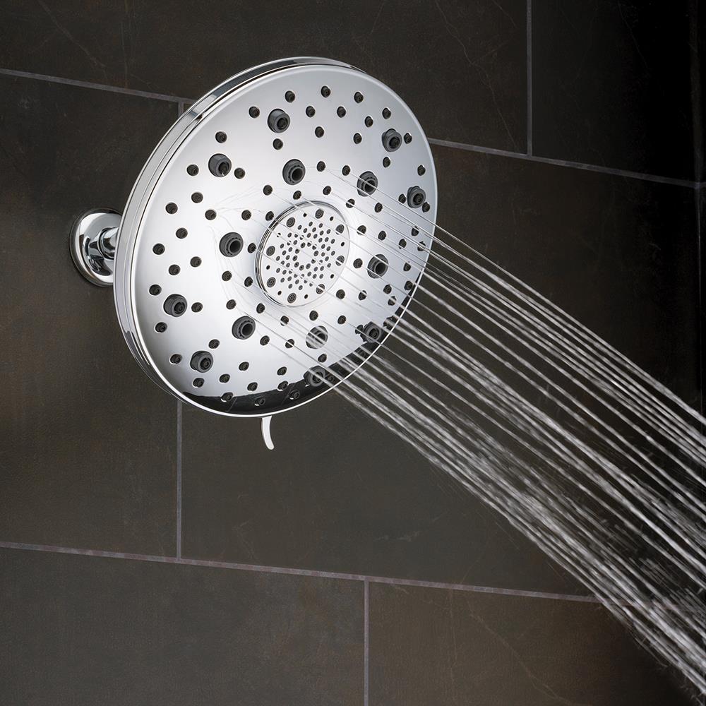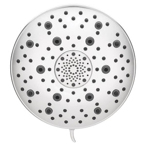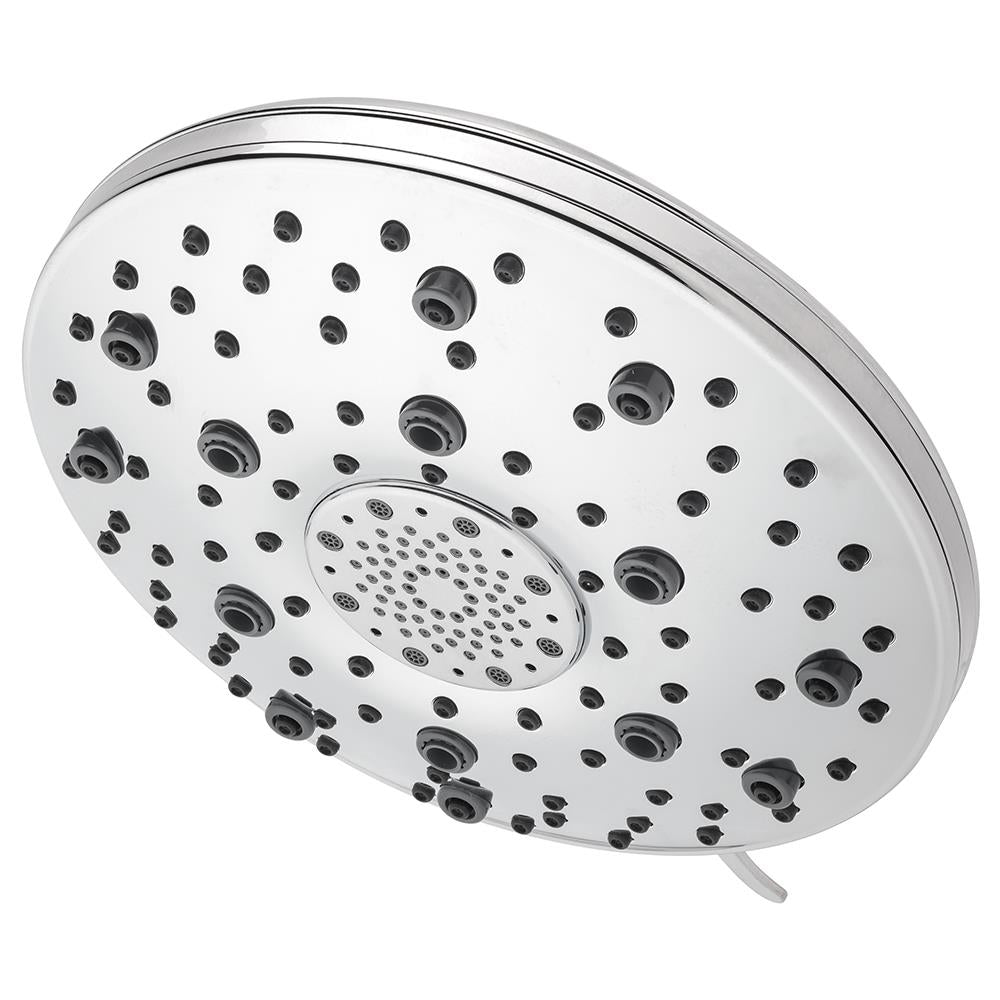 This is the extra-large showerhead with eight different spray functions that provide superior water coverage and a custom shower experience. Its 10" spray face provides a greater scope of water than standard showerheads and helps produce a spa-like environment at home. The showerhead’s eight spray patterns include massage, flood, focused spray, wide spray, and an oxygenated spray setting that accelerates water velocity and increases pressure. Extends 41/4" from shower arm and increases shower height by 7". Made from high quality materials with a chrome finish.