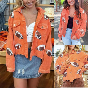 Women's Corduroy Jacket with Football Sequin Patch