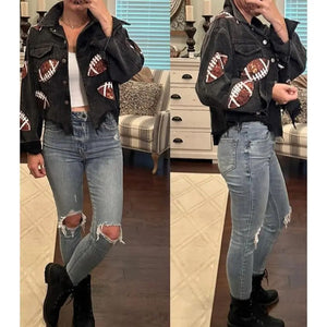 VERSATILE STYLE – Perfect for casual outings, sporty events, or weekend errands, this jacket can be dressed up or down. Pair it with jeans, skirts, or leggings to create effortless everyday outfits. Its unique football sequin detail adds a fun statement without overpowering the look.