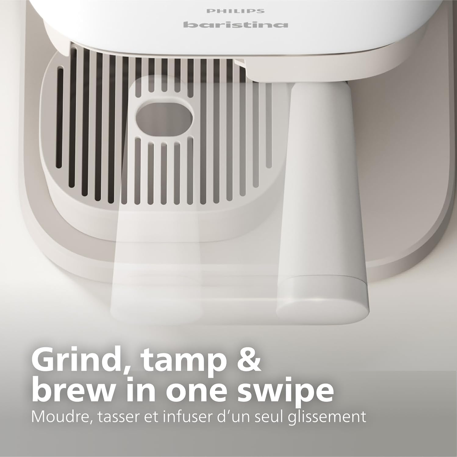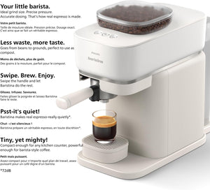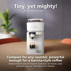 Philips Baristina Espresso Machine - Real espresso. made simple. Compact coffee machine. natural white with white portafilter. 16 bar pump pressure. automatic grinder. Cafe Crema (BAR300/00)