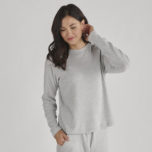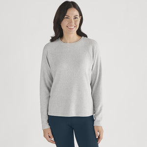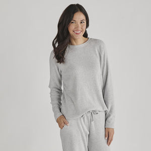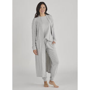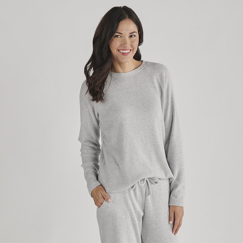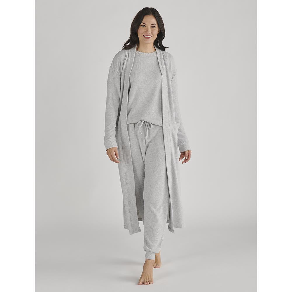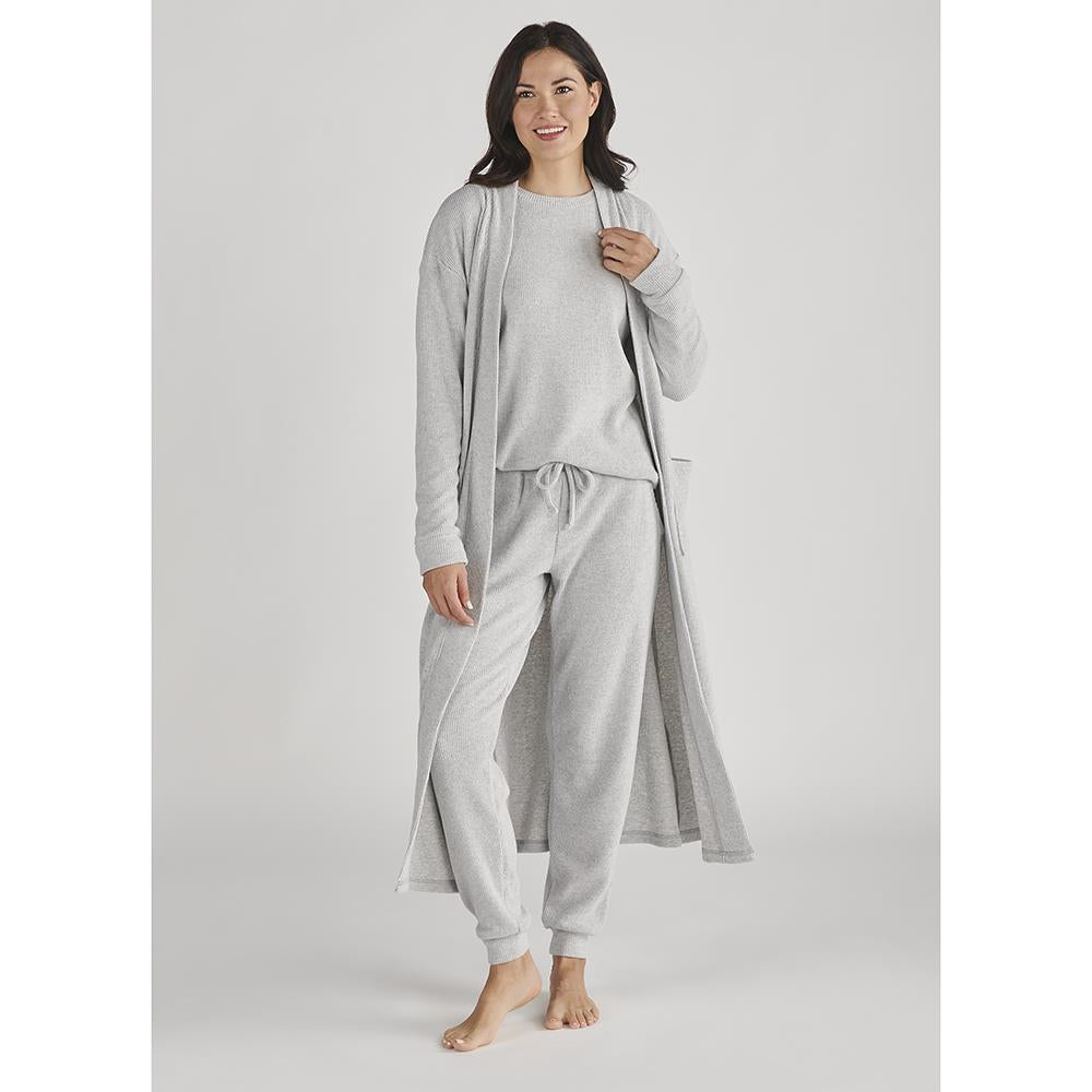 Available only from Hammacher Schlemmer, this is the loungewear made from plush ribbed knit fabric that provides a soft hand and luxurious drape that stretches as you move while maintaining its shape. The blended fibers wick away moisture while providing soft-to-the-skin comfort. Lightweight and quick-drying, the pieces retain their classic styling even after multiple washings. Machine washable. Heather Gray. Sizes S, M, L, and XL.