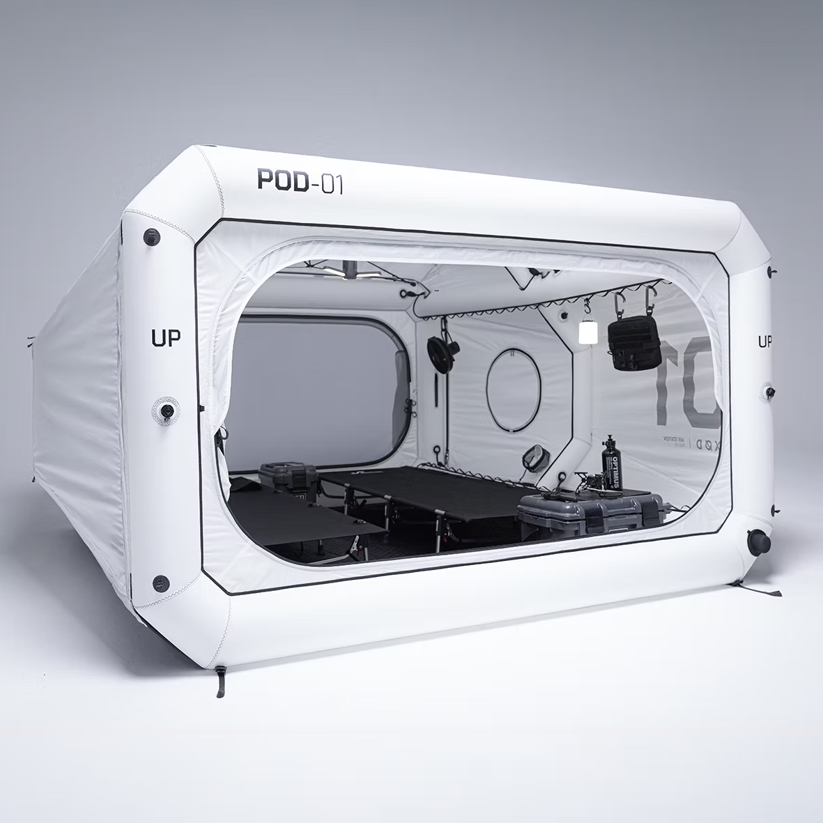100% waterproof, compact, lightweight, and weather-resistant, it’s designed for instant setup and ultimate comfort, anywhere you roam. Hand-pump and Wall Organizer included.