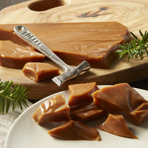 This is the traditional English toffee beloved by Queen Elizabeth II and made with an unwavering commitment to a 126-year-old family recipe. With a rich, creamy caramelized flavor, the 14-oz. toffee features natural ingredients like whole milk, real butter, and savory molasses, with a firm yet soft texture that melts in one’s mouth. Presented in a golden-brown block with a miniature metal hammer for chiseling away the perfect portion size.