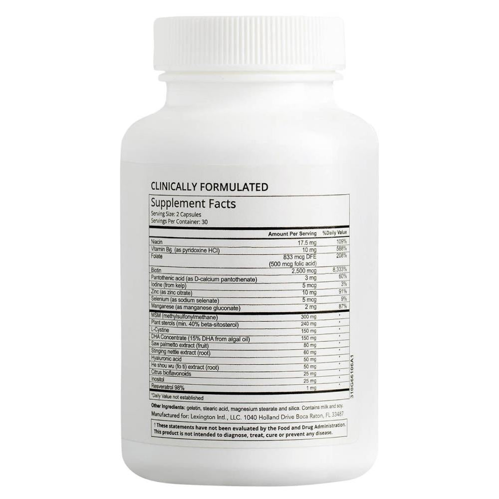 These are the supplements scientifically formulated in collaboration with leading hair growth researchers that help keep hair looking its best. The proprietary formula includes beta sistosterol and saw palmetto to help reduce the production of DHT, the main contributor to hair loss. Biotin helps produce keratin, which helps increase hair elasticity and maintain hair health, Niacin promotes improved blood circulation to the hair follicle, and powerful antioxidants support a healthy scalp. They also strengthen nails and contribute to healthy looking skin. Works for all hair types. No artificial colors, flavors, preservatives, sugar, gluten, yeast, or shellfish. Made in the U.S. 60 capsules per bottle.