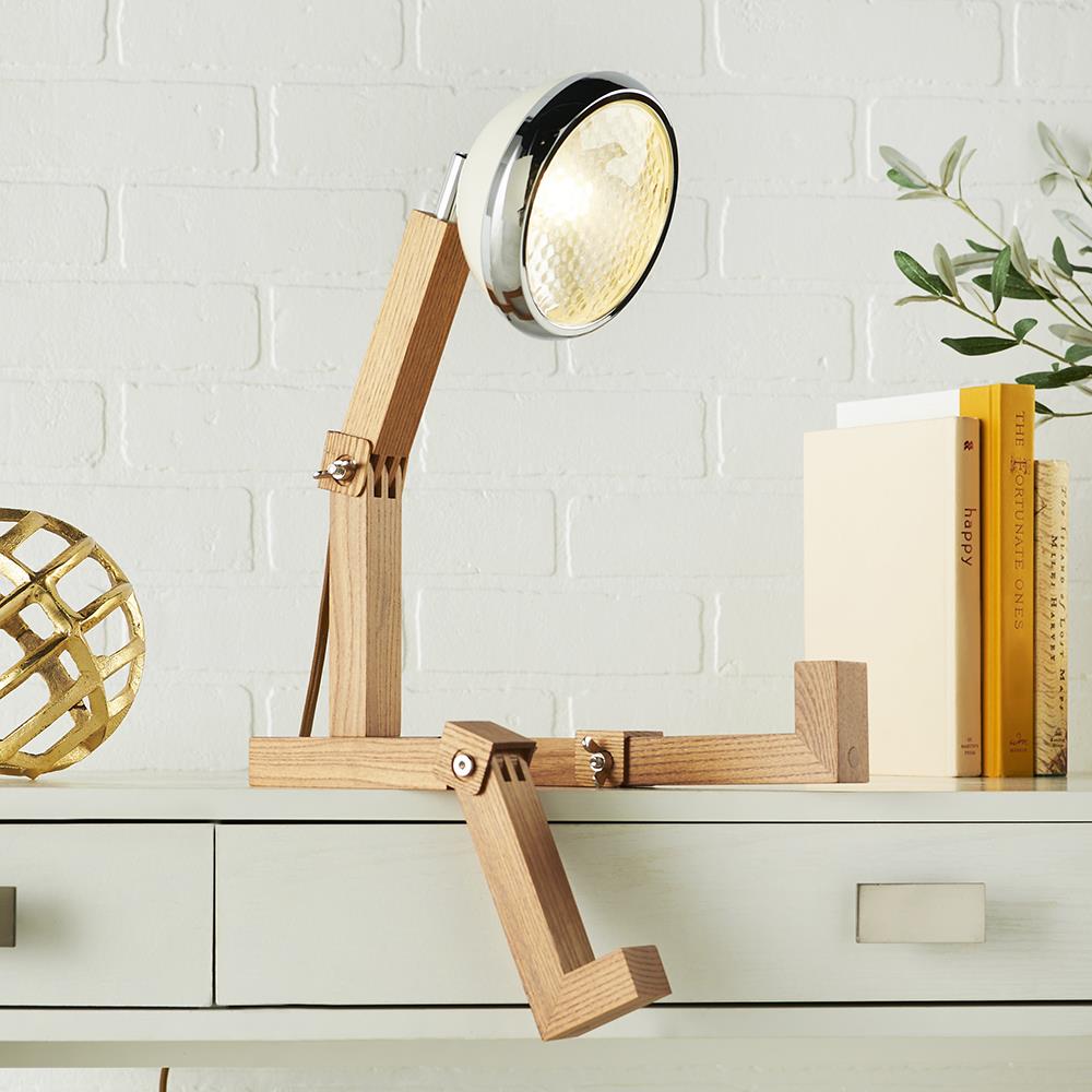 Designed in Denmark, this is the 15" tall directional spotlight that serves as a steady steward for one's smartphone. This knight of light is handmade from ash with a flexible aluminum neck and knees that adjust to keep a device at-the-ready as a squire might a sword for his lord. His single 3-watt LED shines with the chivalry of yesteryear when plugged into USB with its 7' cord. Black or White Ivory. 15 3/4" H x 6" W x 11" D.