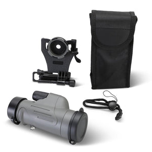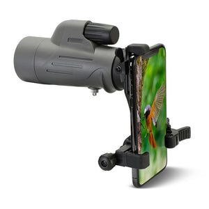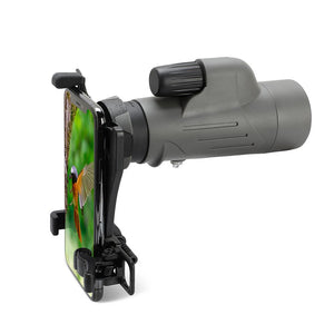 This is the monocular that mounts to a smartphone with an adapter to provide magnified images before taking pictures or recording video onto a phone. The fully multi-coated 42mm objective lenses gather optimal light, yielding 8x magnification that brings wildlife into sharp focus, making it ideal for National Parks, whale watches, and more when mounted to nearly any smartphone, even dual camera phones (not compatible with iPhone 12 Pro Max). Includes wrist strap, pouch, and microfiber lens cloth. 5 3/4" L x 3" H x 2" W. (12 oz.)