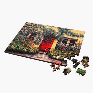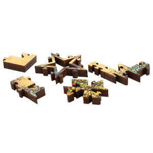 This is the jigsaw puzzle crafted from solid maple that features the painting “Flourishing Garden” by acclaimed nature artist and YouTube celebrity Feliks Kaparchuk. An ideal gift for dissectologists as much for its beauty as its challenge, the puzzle is laser cut from 1/4" solid Colorado Maple using a patented process that creates star-like shaped pieces that form a virtually seamless image. Unlike lesser chipboard puzzles with glued-on paper that can separate from the pieces, the image is directly applied to the wood with a UV coating that prevents fading. 163 pieces. Made in the U.S. 13" x 10" x 1/2" D. (14 oz.)