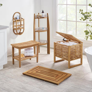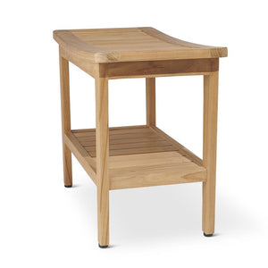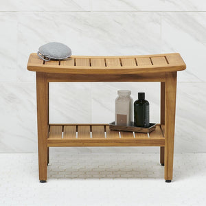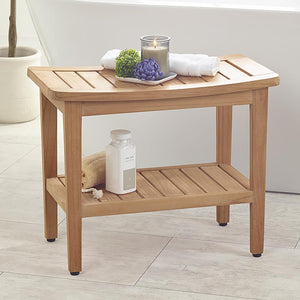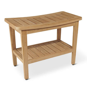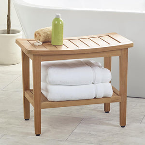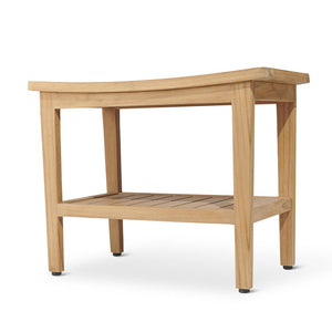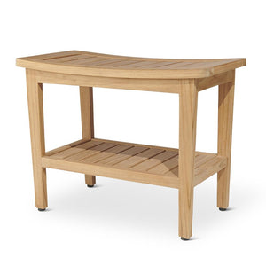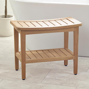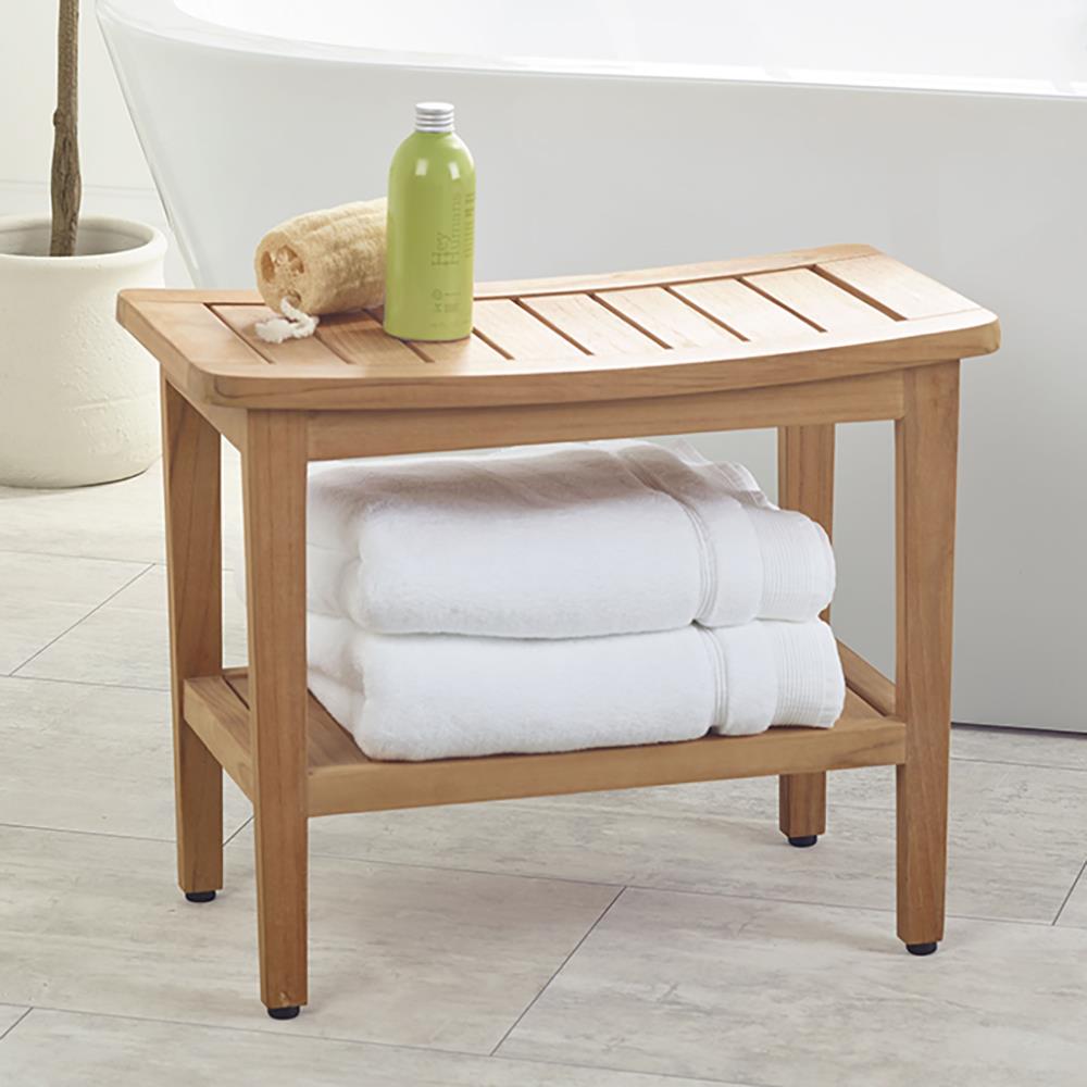 Only available from Hammacher Schlemmer, this is the shower bench crafted from 100% solid teak, the world’s most water-resistant wood. Wider than similar units, the ergonomic seat is curved for comfort and provides an ideal surface to rest on while shaving legs or lathering up. A shelf mounted under the seat holds loofas, shampoo, and other shower necessities while rubber caps on the feet keep the bench from slipping. The seat and bottom shelf are slotted to allow water drainage and will age to a soft gray, or they can be regularly treated to maintain their original color. Supports up to 250 lbs. Arrives assembled. Patent pending. 24" L x 18" W x 12" D. (10 lbs.)