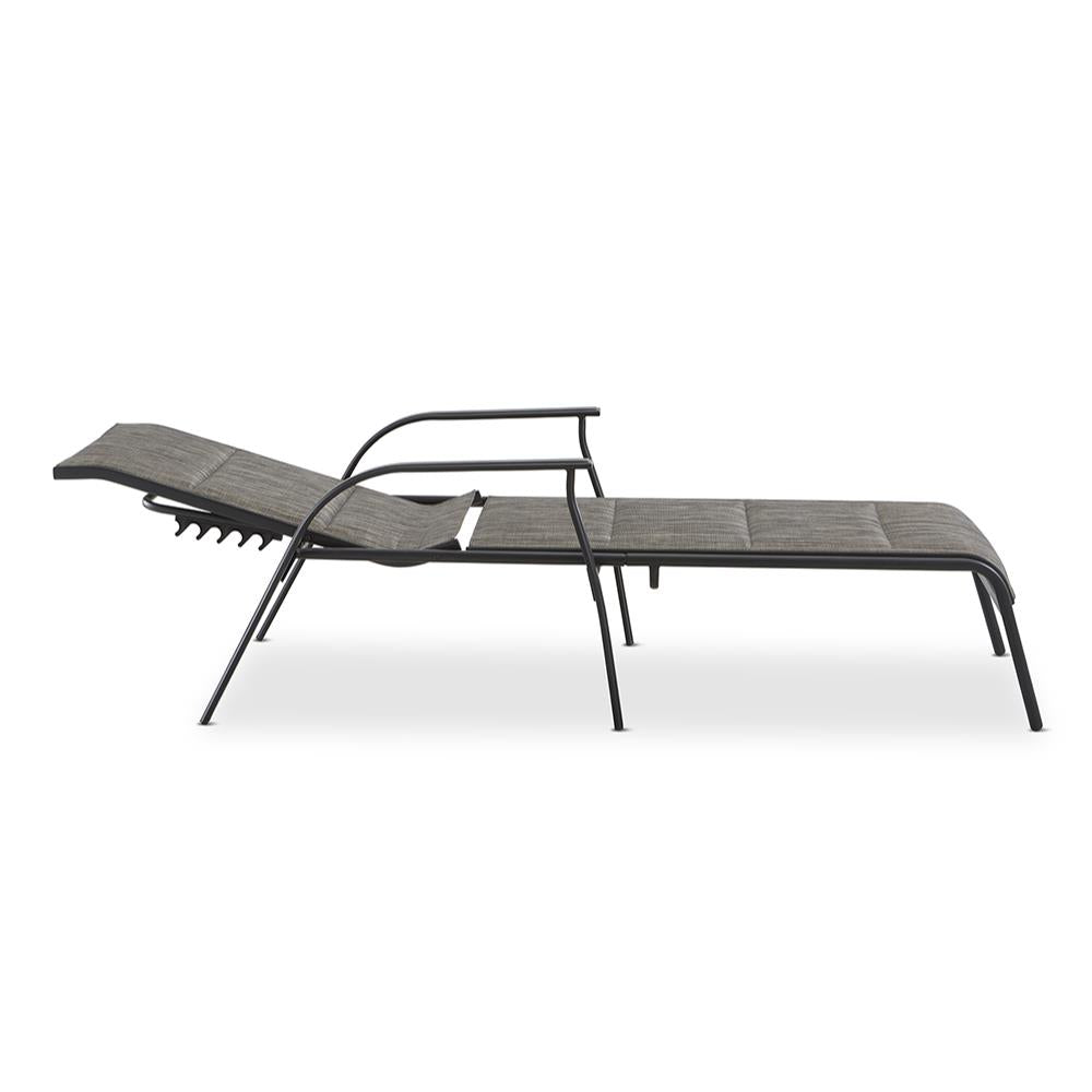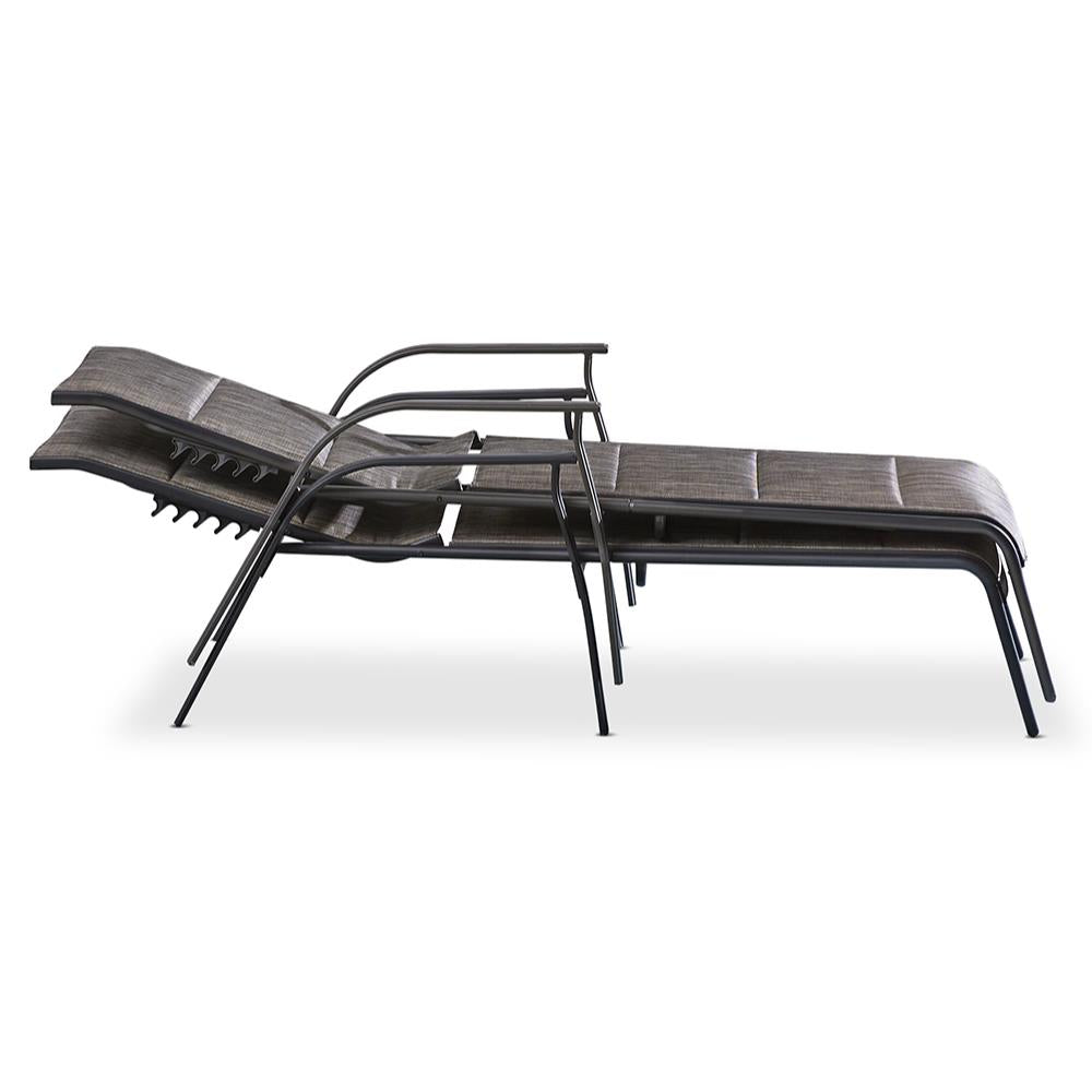 Available only from Hammacher Schlemmer, this is the outdoor chaise lounge that can be easily stacked and stowed away when not in use. Each chaise is made with a powder coated steel frame that supports up to 250 lbs. and has slim, low-profile padding on the seat and back not found on standard outdoor furniture. The slim padding is woven into its PVC-wrapped polyester fabric that repels heat and UV light, resists fading, and provides cooling air circulation. Assembly required. Black or Gray. 78" L x 25" W x 21" H. (26 lbs.)
