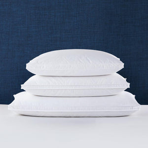 Available only from Hammacher Schlemmer, this is the pillow filled with superior European white duck down that is one of the softest, most luxurious down clusters in the world. The down compresses to contour to the shape of your head and neck for optimal support and quickly reverts to its original loft when you raise your head. This pillow is filled with large down plumules, ensuring superior softness, loft, and breathability—unlike lesser pillows stuffed with small down clusters from immature waterfowl. Each ounce of down has nearly two million fluffy filaments that interlock and overlap to form a supple cushion. The 100% hypoallergenic pillow has a 280-thread count cotton shell with jacquard stripes. Queen Medium. 20" D x 30" W.