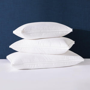 Available only from Hammacher Schlemmer, this is the pillow filled with superior European white duck down that is one of the softest, most luxurious down clusters in the world. The down compresses to contour to the shape of your head and neck for optimal support and quickly reverts to its original loft when you raise your head. This pillow is filled with large down plumules, ensuring superior softness, loft, and breathability—unlike lesser pillows stuffed with small down clusters from immature waterfowl. Each ounce of down has nearly two million fluffy filaments that interlock and overlap to form a supple cushion. The 100% hypoallergenic pillow has a 280-thread count cotton shell with jacquard stripes. Standard Firm. 20" D x 26" W.