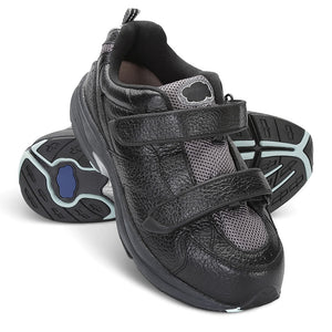 These are the walking shoes that provide extra room for those with swollen feet, edema, or other foot maladies such as bunions or hammer toes. They have an oversized toe box and an extra deep insole and heel cup. An arch stabilizer provides enhanced support while the padded lining and removable gel insoles ensure all day comfort. With a full grain leather upper, breathable mesh tongue, and two hook-and-loop closures. Flexible non-slip outsoles. Imported. Black. Women’s. Whole sizes 6-11.
