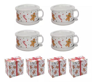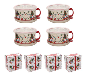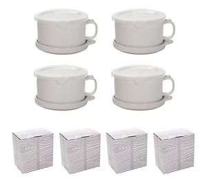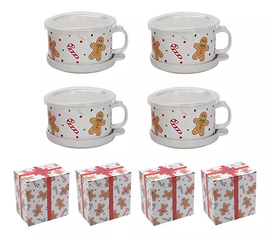 - Includes four 25-oz ceramic soup mugs, four deep-dish ceramic Lid-its, four plastic snap-on storage covers, and four gift boxes