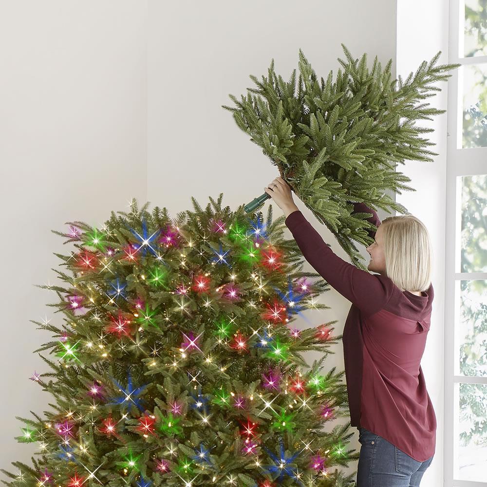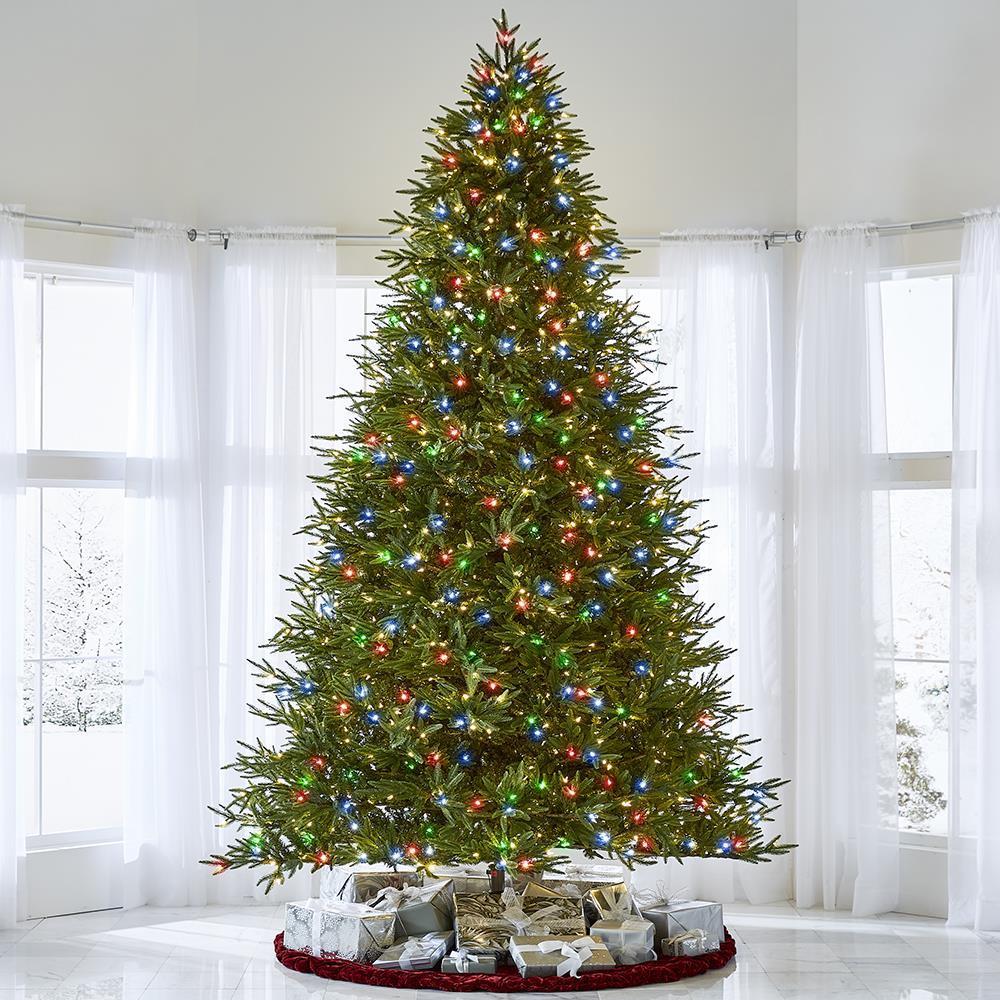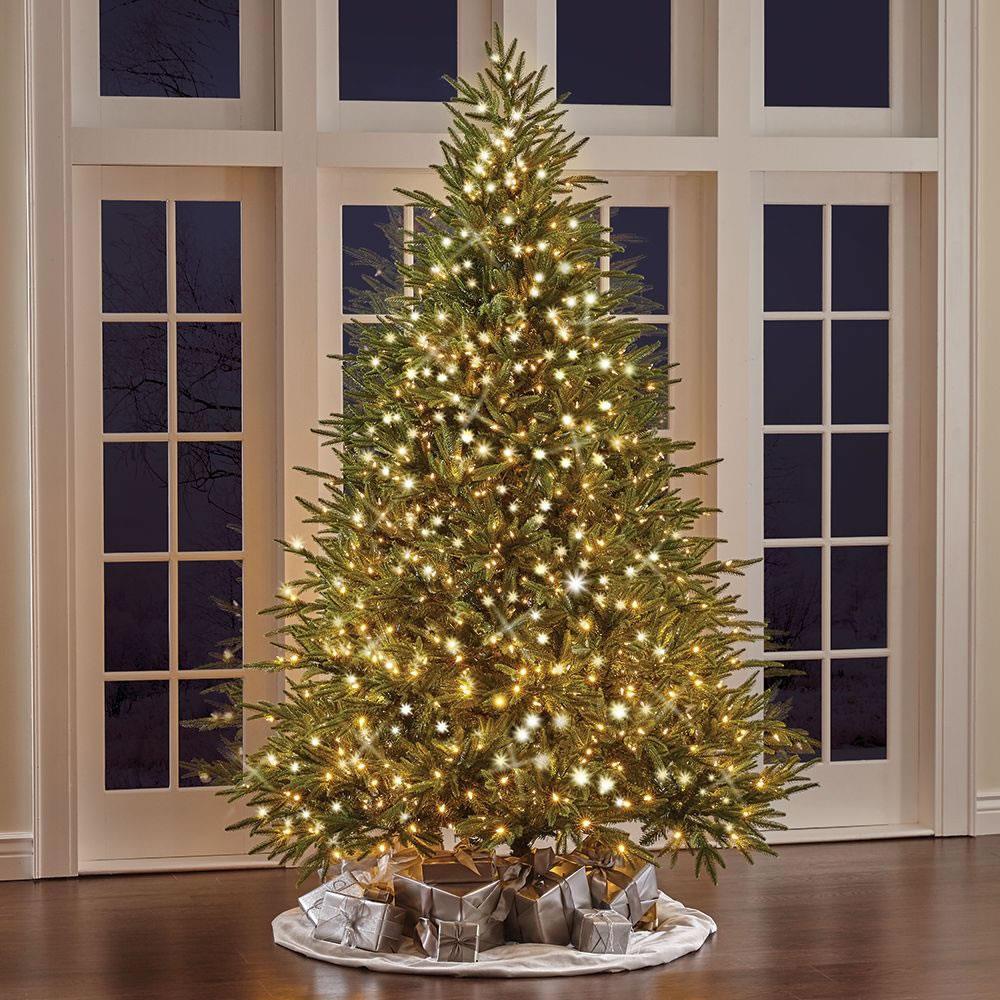 Molded from a live Abies fraseri, this is the world’s most realistic Fraser Fir, meticulously strung with the best LED lights. Available exclusively from Hammacher Schlemmer, it is the only tree with three-dimensional, injection-molded branch tips that replicate the exact growth patterns, cascading branches, and fine, soft green needles of a freshly cut Fraser Fir. Unlike false claims made by others, this tree is truly the fullest, with more tips than any tree on the market. Its memory wire branches instantly fan out, resulting in a fuller, more natural-looking tree that requires minimal shaping. The Best LightsThe World's Best Prelit Fraser Fir tree has LEDs that last 25,000 hours - 8X longer than typical incandescents while consuming 98% less power. The lights produce the same traditional warm glow. A remote control turns the lights on and off. White or multicolored lights.Pole Connect Technology Eliminates the need to connect light cords together for each trunk section.12' Fraser Fir. Full width. 2,000 LED lights and 12,260 tips. 88" Diam. (118 lbs.)