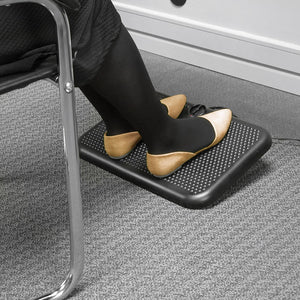 This is the ergonomic foot warmer that fits under a desk. Unlike traditional space heaters that can overload circuits with 1,500-watts, this unit is designed for home or office environments, and uses a mere 105-watts to distribute ambient heat across its entire surface. Ideal for improving circulation and keeping your feet warm in a brisk office, it provides two heat settings—120° F and 140° F—and has three adjustable positions. AC plug. Black. 18" L x 12" W x 2" D. (5 lbs.)
