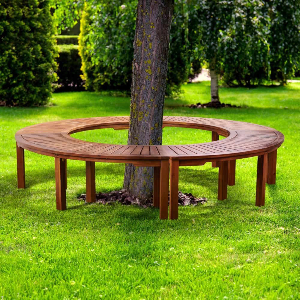 This is the weather resistant Acacia bench with a curved design for perfectly positioning around patios, firepits, or plants. Due to its Acacia wood construction, the bench is naturally resistant to water, bacteria, and mold. The bench's slatted seat can be accessed from either side, allowing users to sit facing inward (around a central area such as a table or firepit) or facing outward when situated around a tree or shrub. Supports up to 440 lbs. Minimal assembly required (hardware included). The wood can be oiled to maintain its Golden Teak color or left alone to develop a gray patina. 57" L x 22 3/4" D x 17 3/4" H. (20 lbs.)