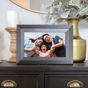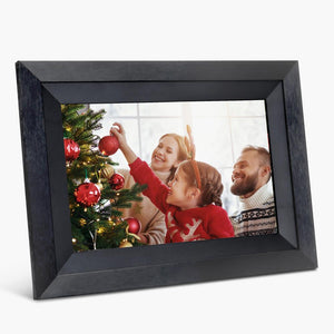 This is the smart wireless picture frame that allows family and friends to easily share photos and videos from anywhere. Using a free app, connected users can transfer up to 10 images at a time from their smartphone to the frame to share life’s memorable moments as they happen. The 10" LCD touchscreen offers a true 1080p display at 1280 x 800 screen resolution, along with brightness and contrast controls and an adjustable slide show. Its generous 32 GB internal memory stores hundreds of images in the most common file formats, including jpeg, bmp, gif, tif, and png. Dual band Wi-Fi connects to 2.4GHz and 5GHz networks. Photos can also be uploaded via Micro USB or Micro SD card. Can be wall mounted or displayed on a tabletop or any flat surface. Sleep mode turns the frame off when not in use. AC plug with 6' cord. 8 1/2" H x 11 1/2" W x 1" D. (1 lb.)